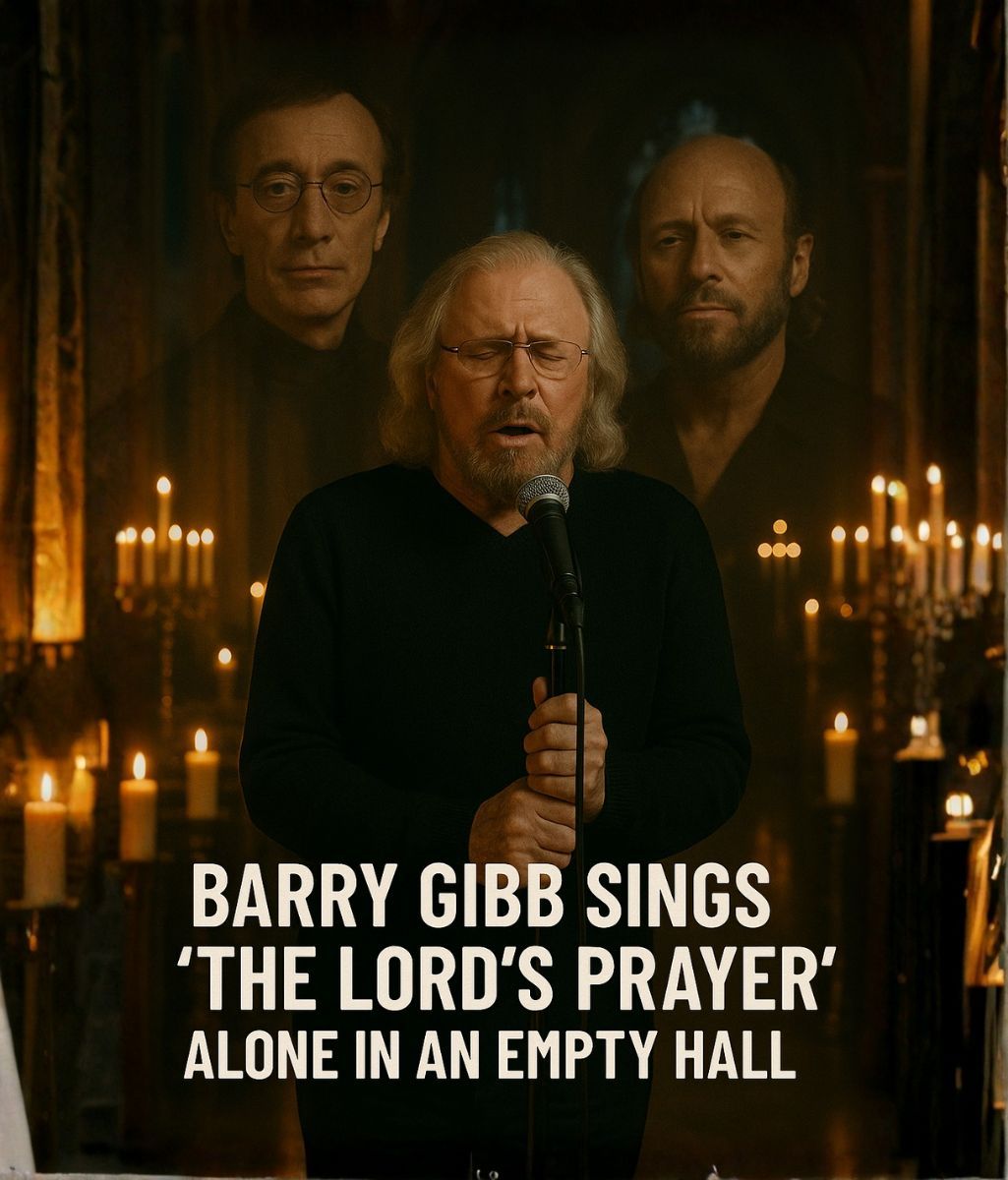 Just a single microphone, a dim hall, and Barry Gibb — standing in a silence so deep it felt sacred. It was here, according to those close to him, that he recorded what many now believe may be his final message to the world: a raw, trembling, profoundly emotional rendition of “The Lord’s Prayer.”
